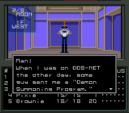 This game is amazing. The story is deep and involving (literally), the game is long (expect to spend about 50 hours on it), the graphics are amazing for 1992, and the gameplay rewards experimentation and is full of micromanagement. This is very much one of the best RPGs for the SNES that I've ever played. The player is a demon summoner, thrust into the middle of a war in modern-day and futuristic Tokyo. Shin Megami Tensei is unique in that rather than force you onto one side or the other, the game presents both sides' arguments equally and leaves you, the player, to make the final choice for yourself. This game is incredible, and everyone should try go play it. NOW.